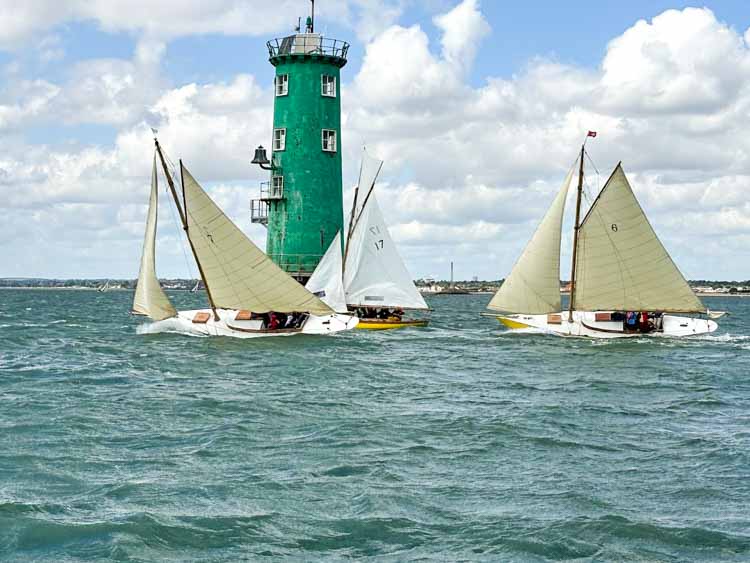 Estelle took the most windward position and unfortunately ran out of wind in the shadow of cruise liner moored on the Carlisle pier. Garavogue took the side nearest the bandstand and had the best start and lead out of the harbour ahead of Geraldine closely followed by Naneen and Estelle.