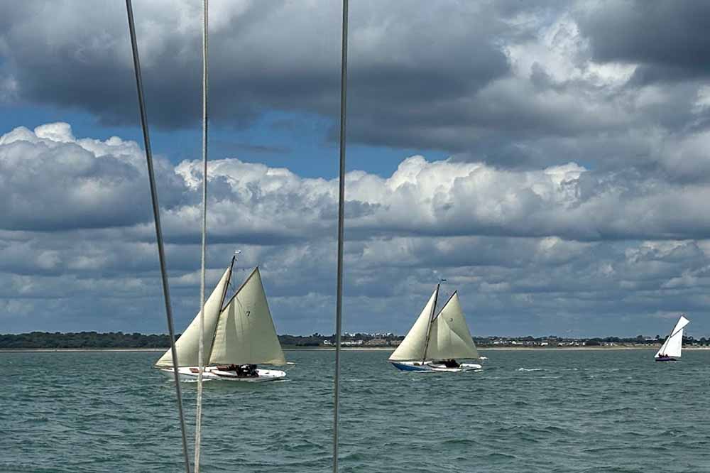 Estelle took the most windward position and unfortunately ran out of wind in the shadow of cruise liner moored on the Carlisle pier. Garavogue took the side nearest the bandstand and had the best start and lead out of the harbour ahead of Geraldine closely followed by Naneen and Estelle.